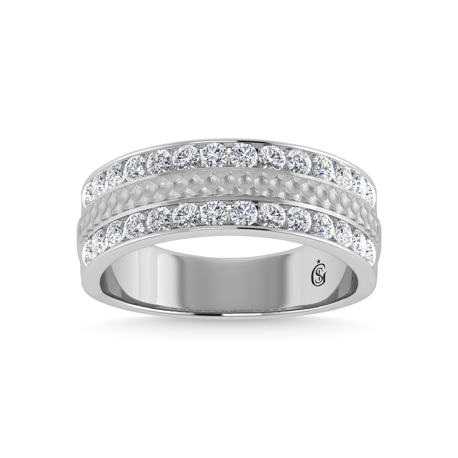 | 28 | Round | Diamond | G-h | I1-i2 | 1 | Channel / Machine | 14k White Gold | Women |