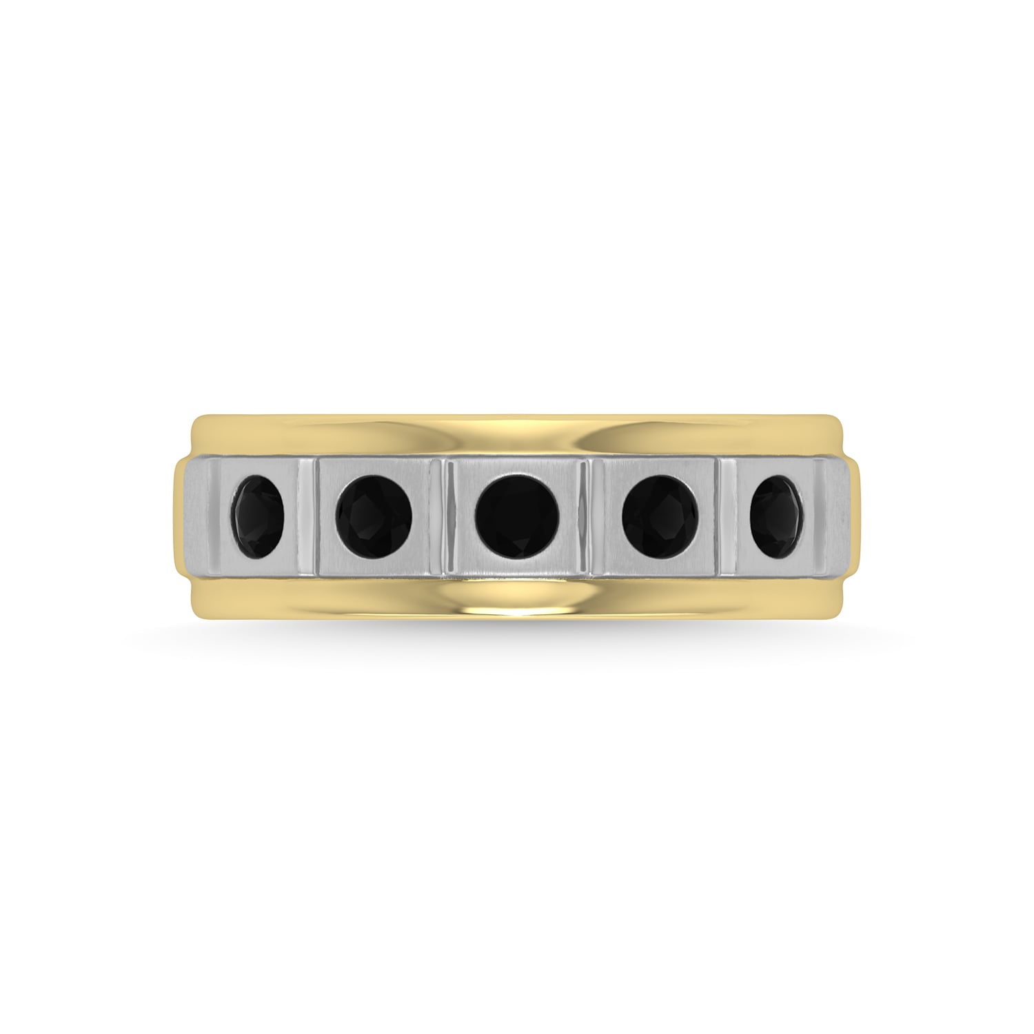 14K Yellow Gold Diamond 1/2 Ct.Tw. With White Rhodium Facet Men?s Machine Band