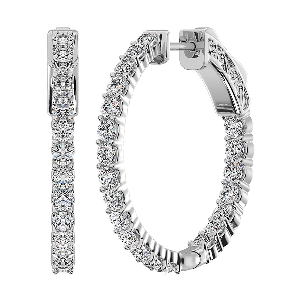 14K White Gold Lab Grown Diamond 1 Ct.Tw. In and Out Hoop Earrings (3/4 inches)