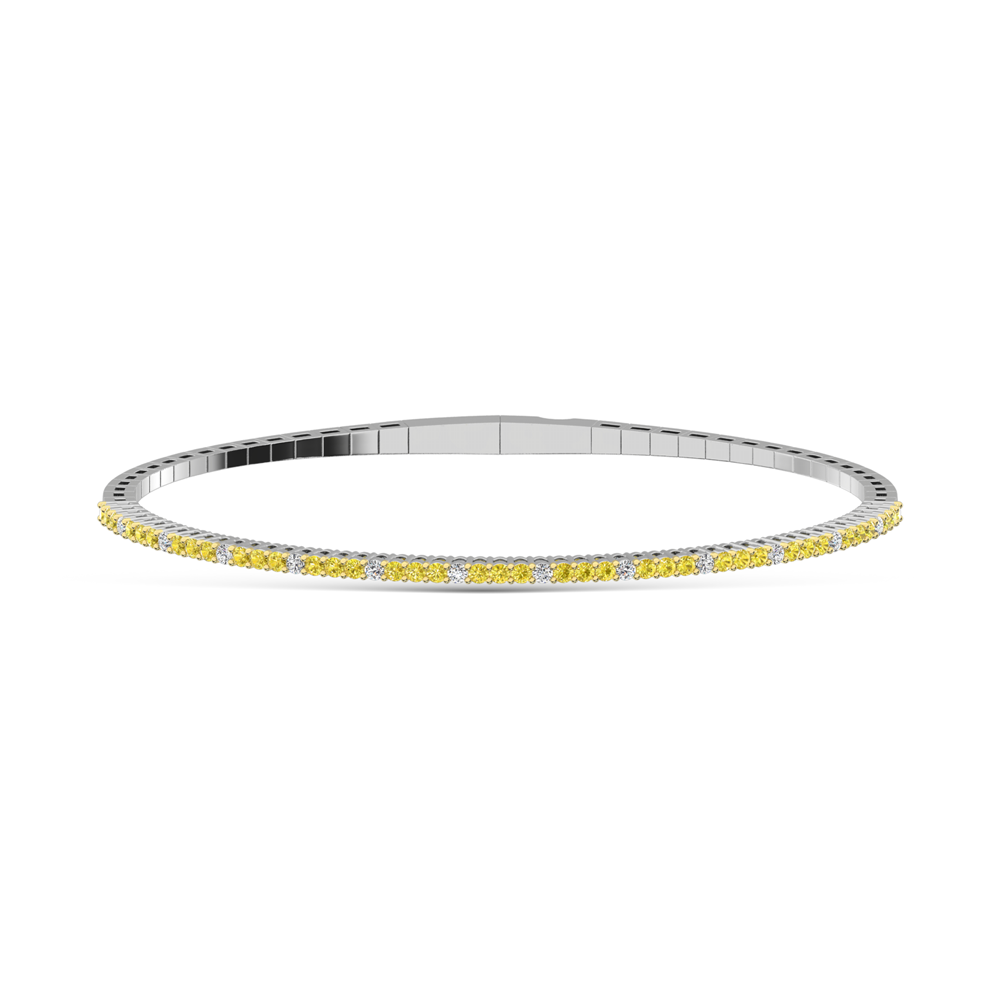 14K White Gold 2 Ct.Tw. Labgrown Alternate 3 Yellow and 1 White Diamond Flexi Bangle